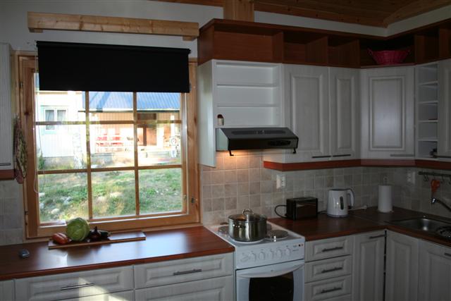 sähkö- ja lattialämmitys, sähkövalo, kylmä ja lämmin vesi, suihku, erillinen wc, varaava takka, sähköliesi,